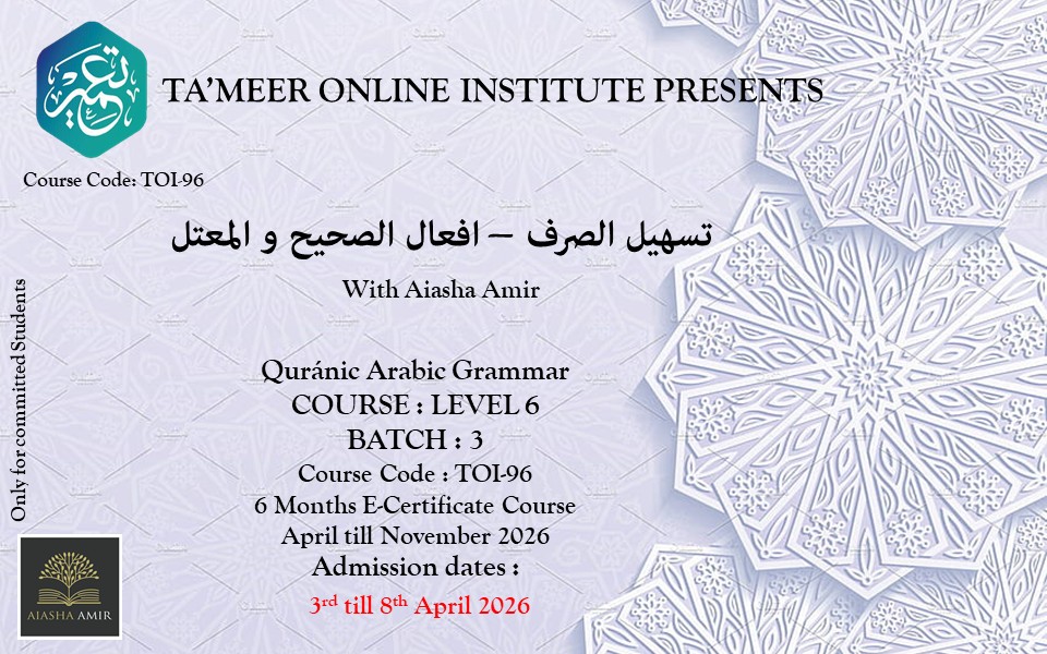 Welcome to the Arabic Grammar – Tasheelus Sarf – Level 6 course at Ta’meer Online Institute. To ensure a productive and meaningful learning experience, please carefully review these policies and requirements before enrolling.