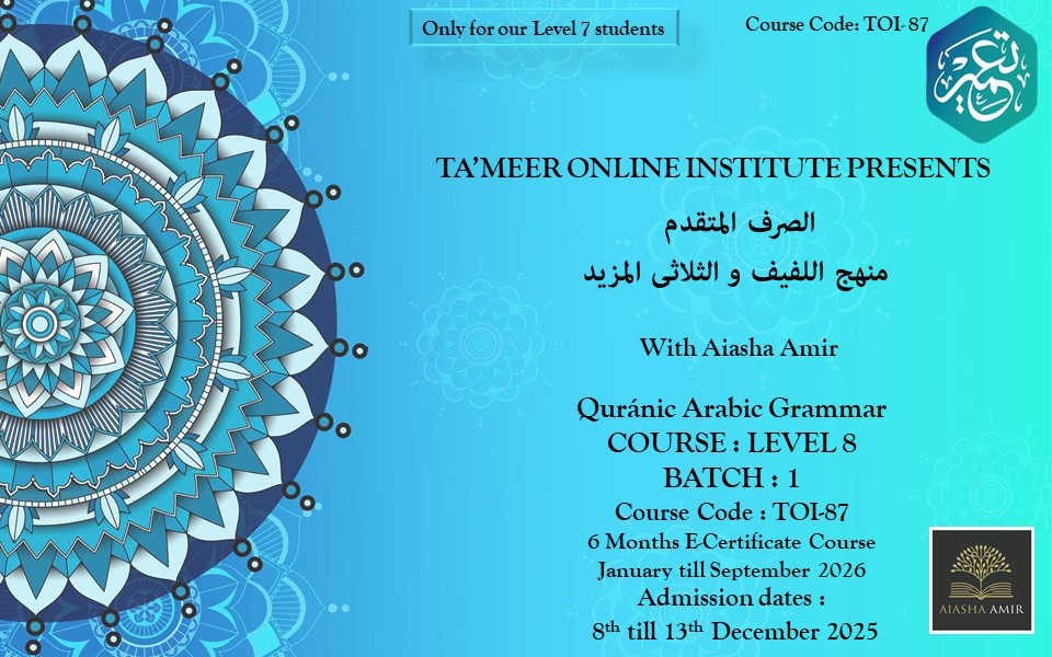 Welcome to the Arabic Grammar Level 8 course at Ta’meer Online Institute. To ensure a productive and meaningful learning experience, please carefully review these policies and requirements before enrolling.