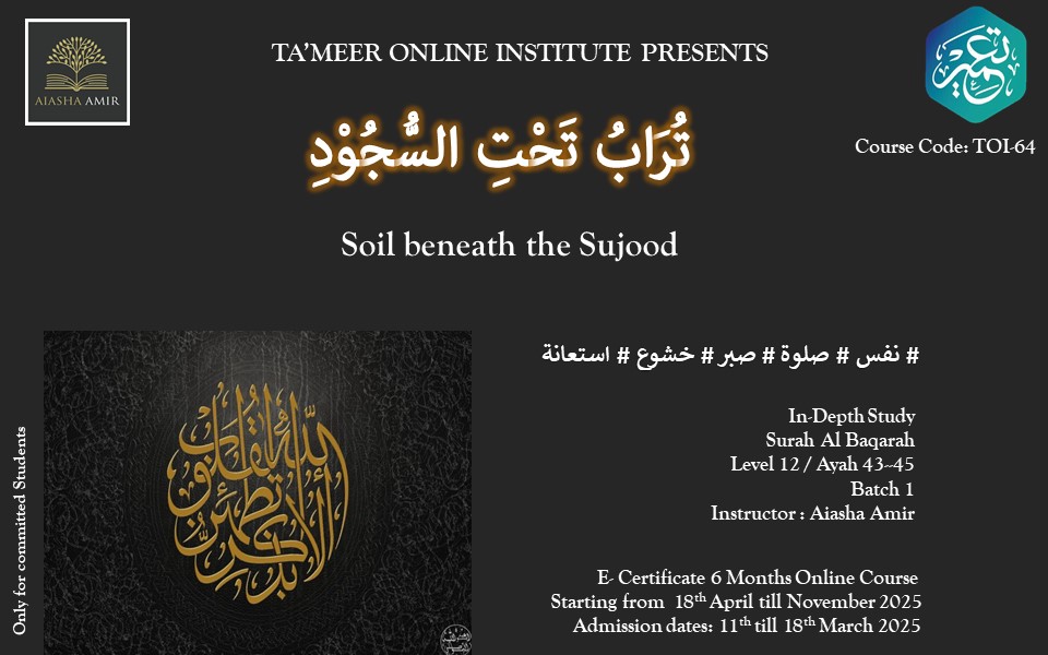 Welcome to the In-Depth Study of Surah Al-Baqarah course at Ta’meer Online Institute. To ensure a productive and meaningful learning experience, please carefully review these policies and requirements before enrolling.